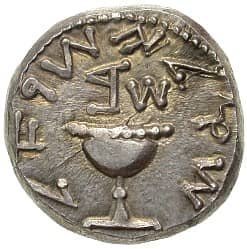 Jesus borrows a silver shekel from one of the trusted bar staff.