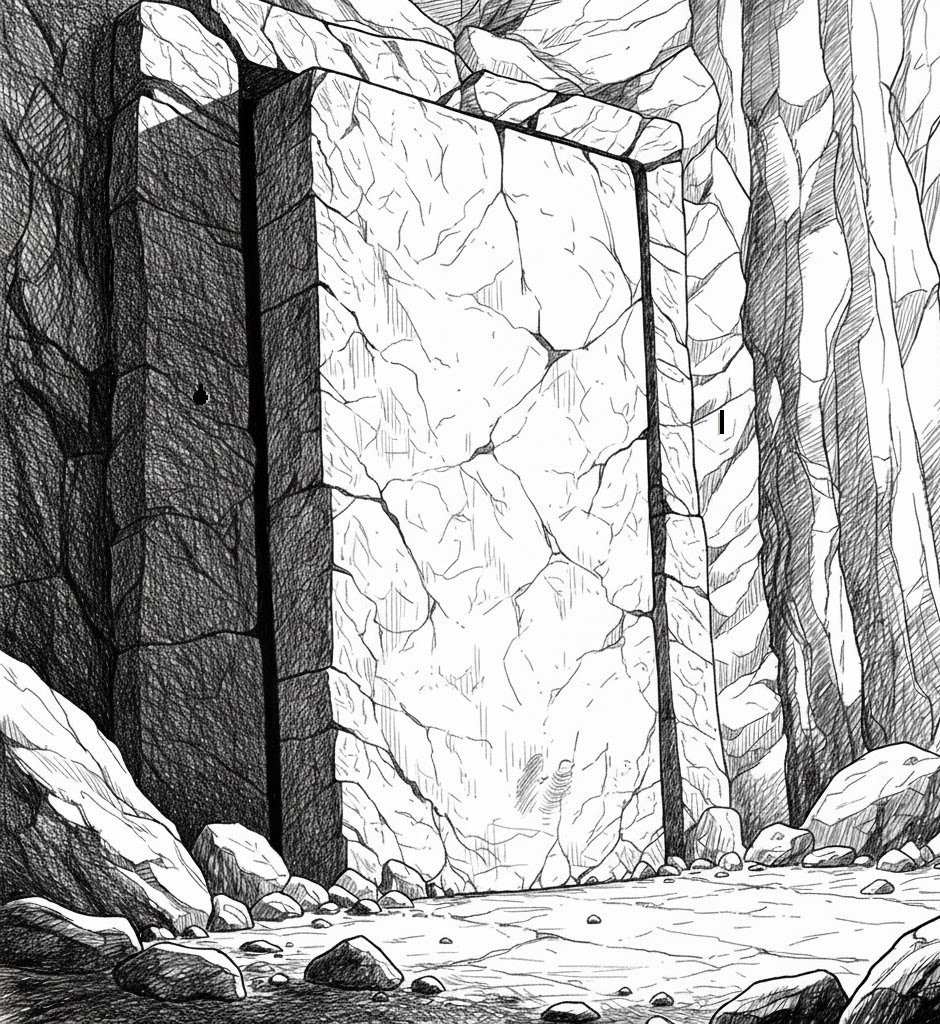There is a whooshing sound, and dust - the heavy door hasn’t been opened in 200 years, but now it is slowly opening inward, rotating on massive hinges.